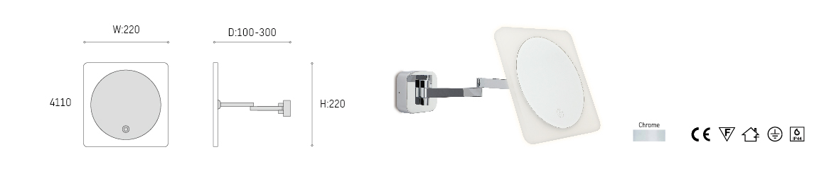 典型的镜子照明灯,可以根据你的喜好有不同的安装方式,可夹在镜子上或安装在柜子上。具备IP44。