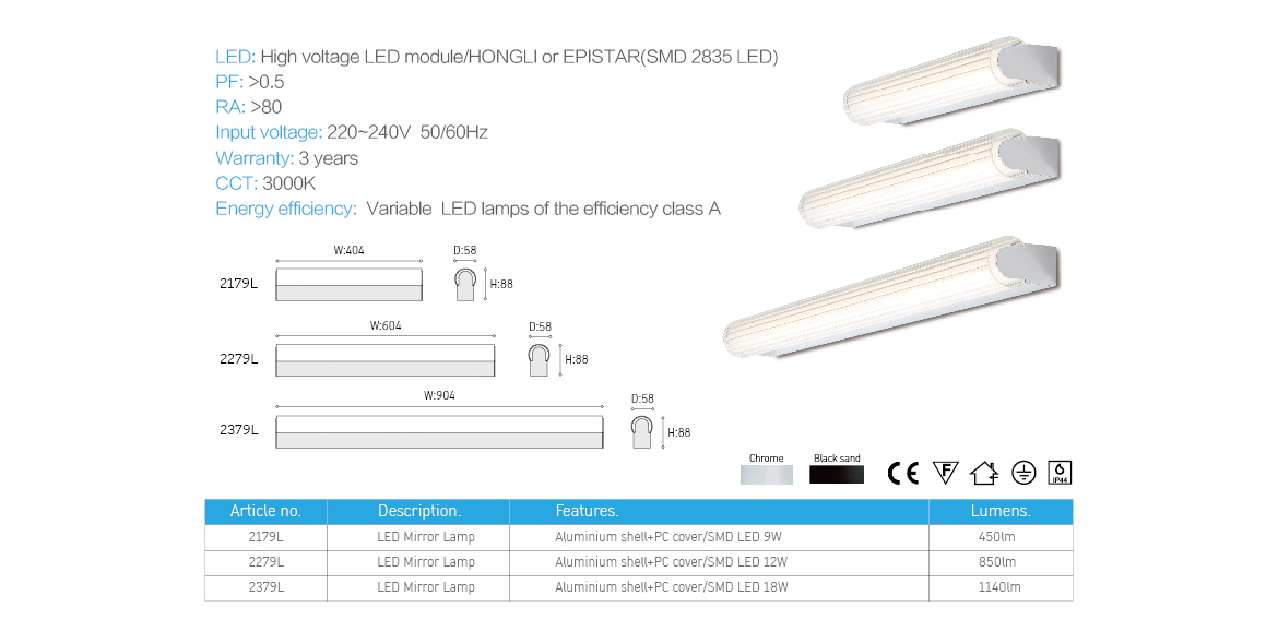 An IP44 bathroom wall lamp, with diffusion effect PC shade, let you feel the soft and comfort light in your