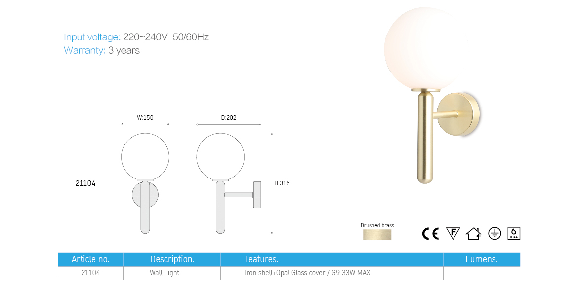 Round ball glass lamp, match with round bracket and round base; make this lamp with strong feeling.