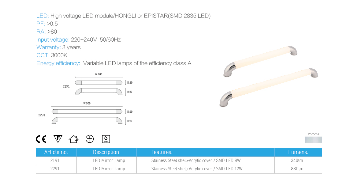 A Wall lamp with round arm in modern style, use typical round acrylic strip, strong quality collision with simple and fashion out shape. It has IP44 waterproof function and you can choose difference length.