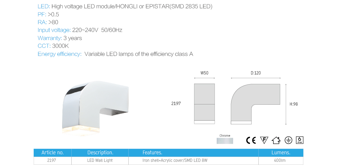 A bathroom lamp with light ups or down, can installation on the front of the mirror.