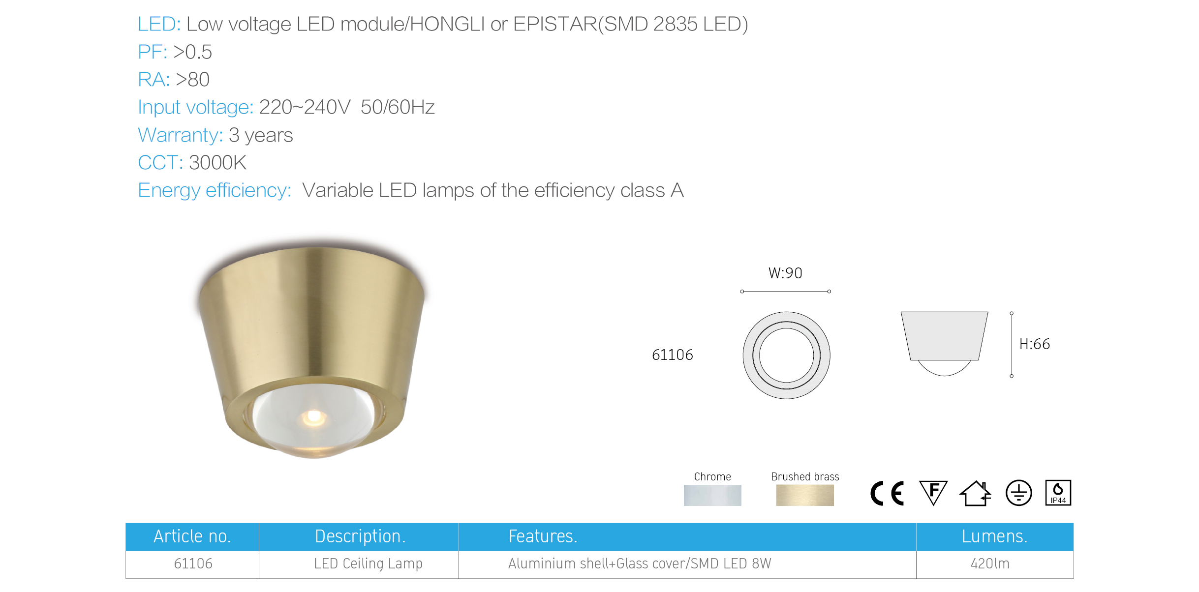 AN IP44 ceiling lamp with Finier lens, the light can reflected with 45°, 60°…you can have difference color as you like.