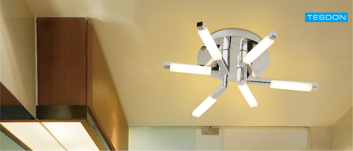 A ceiling light with enjoyment, there are in total 6pcs metal arm can be adjustable by yourself to difference style as you like, please give play to your imagination, let the lamp no longer humdrum and more unique. It is suitable in bathroom and bedroom with IP44 waterproof.