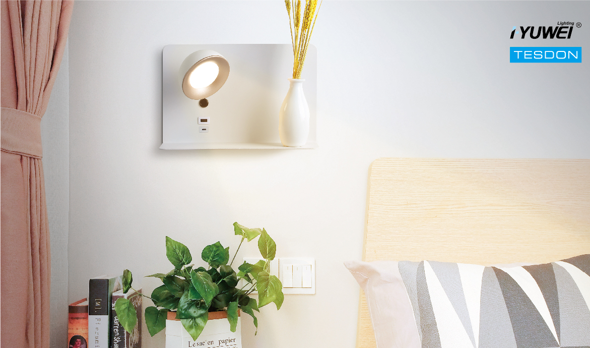 A bedroom lamp with Tpye C faster charger and traditional USB charger, the flexible spot head support to adjust the angle of the light, you can also use it close to the reading desk with the shelf.