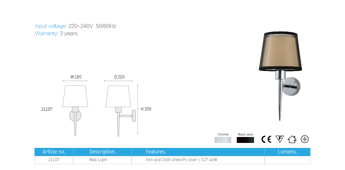 A double cloths fabric shade trapezoid wall lamp, soft and smooth shade combine with the strong quality metal, give you a difference fashion style.
